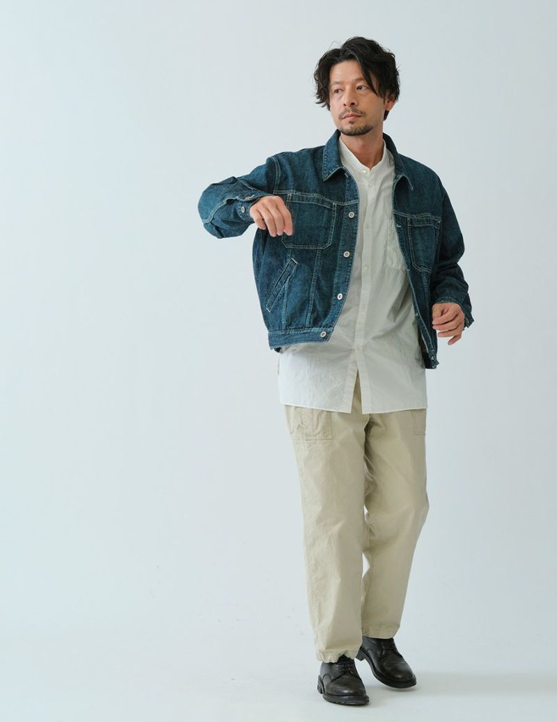 ワークタイプのパッチポケットが特徴で、あらゆるパーツにギャザーを入れることで立体的なシルエットになる。