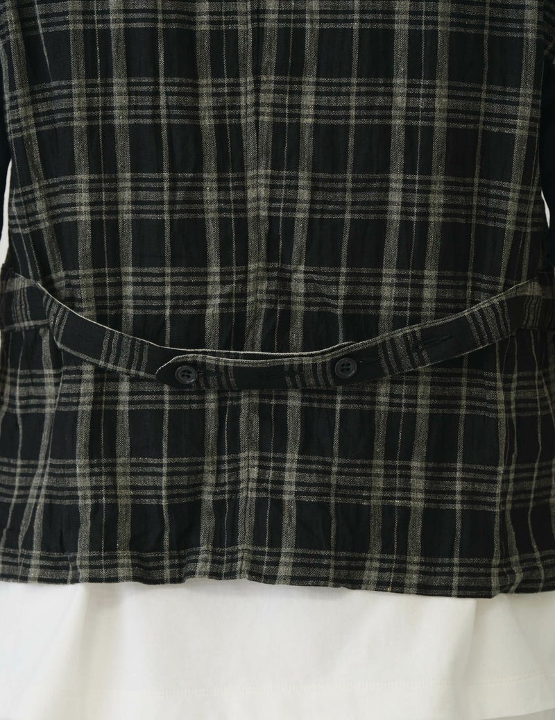 表地はリネン100%のクラシックなチェック素材。