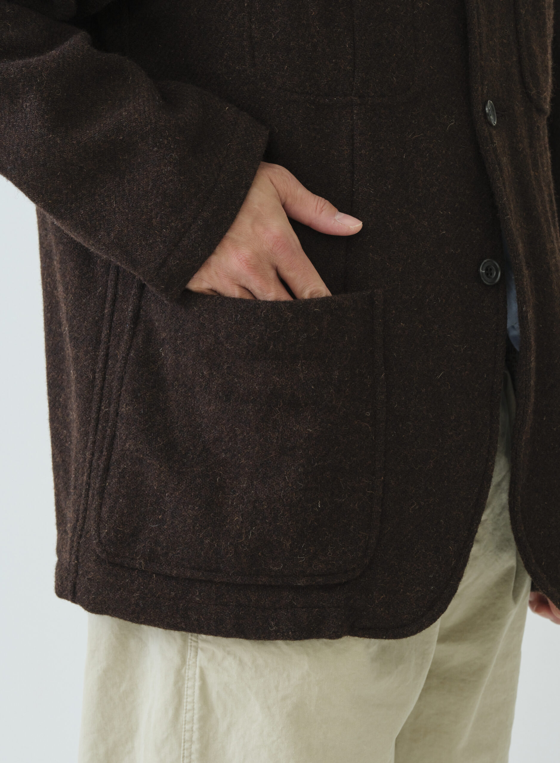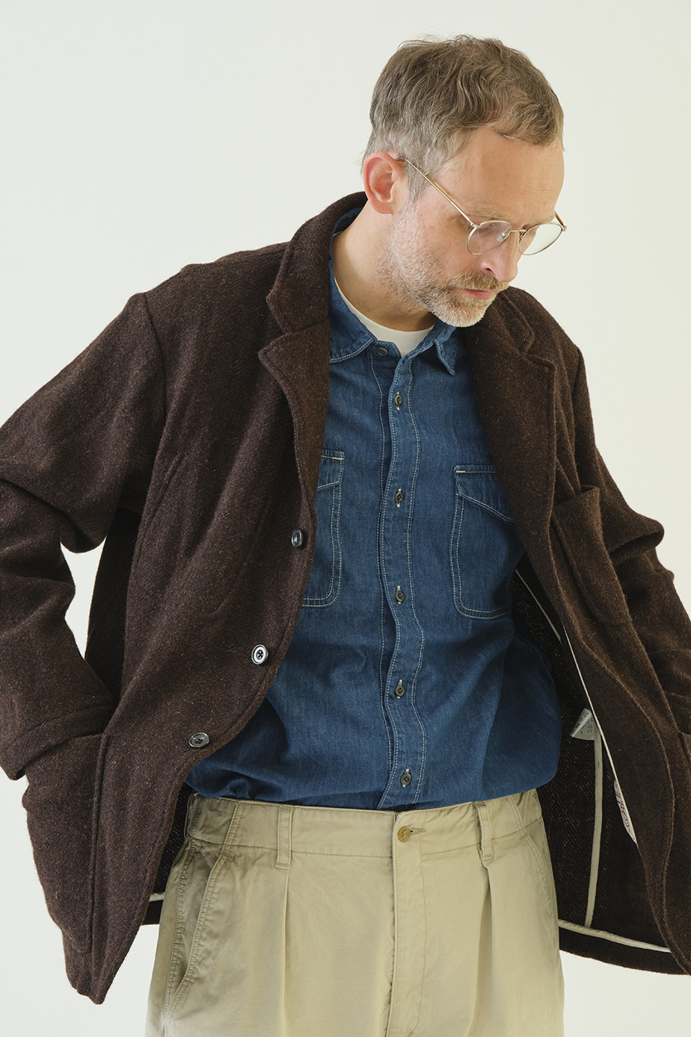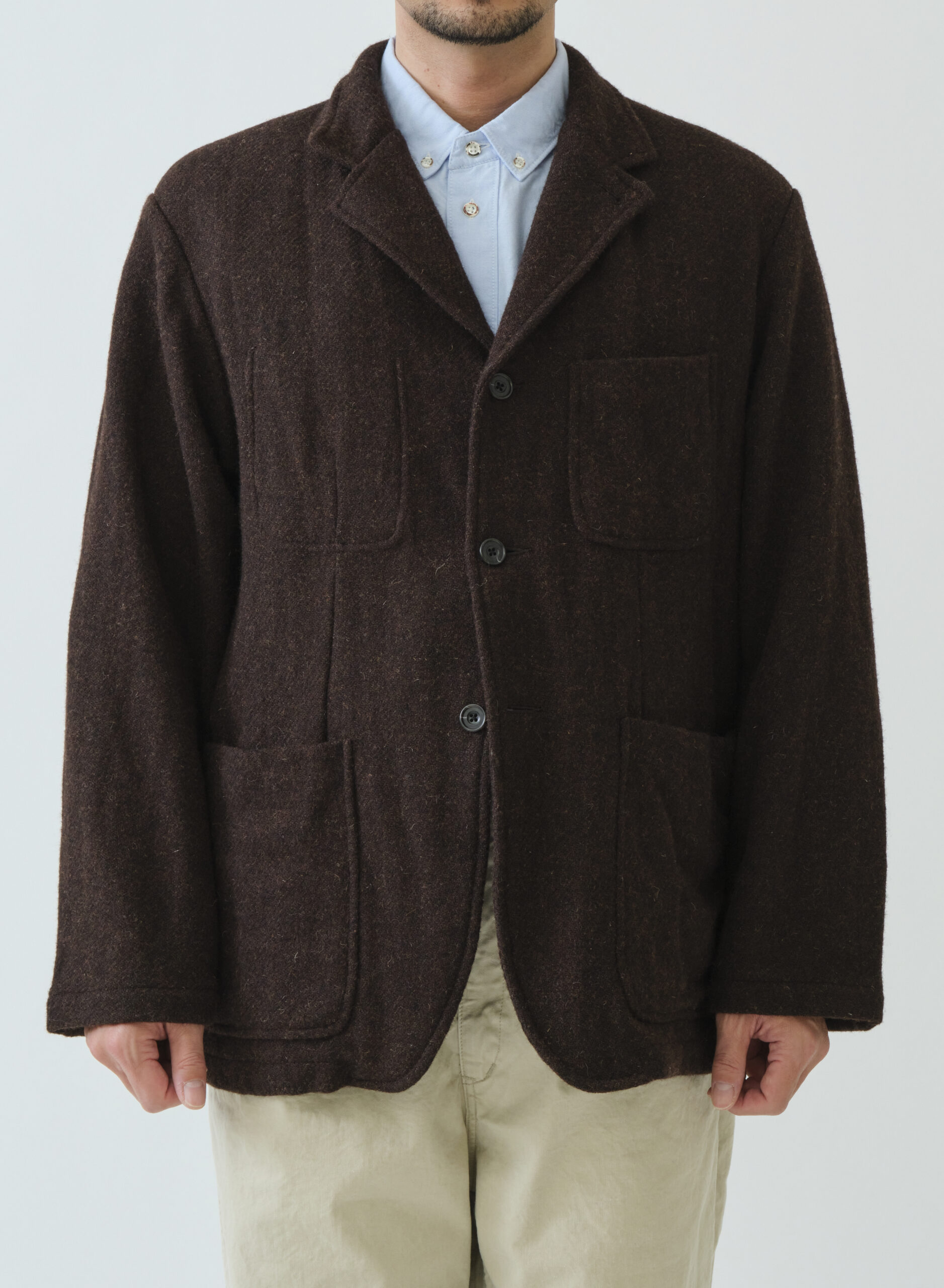 柔らかな着心地とクラシックな佇まいを両立したコンフォートテーラードジャケットです。ボックスボディーでゆったりとしたコンフォートスタイルのテーラードジャケット。釦位置をやや高めに設定したフロントデザインは、クラシックな印象を残しつつ上品に首元を引き立てます。カジュアルな表情を加えるパッチポケットを前面に配し、右側には実用的な内ポケットを備えています。ライトウェイトに仕上げるため、すべての縫い代をパイピングテープで処理。パイピングの生成りカラーがさりげないアクセントになっています。
