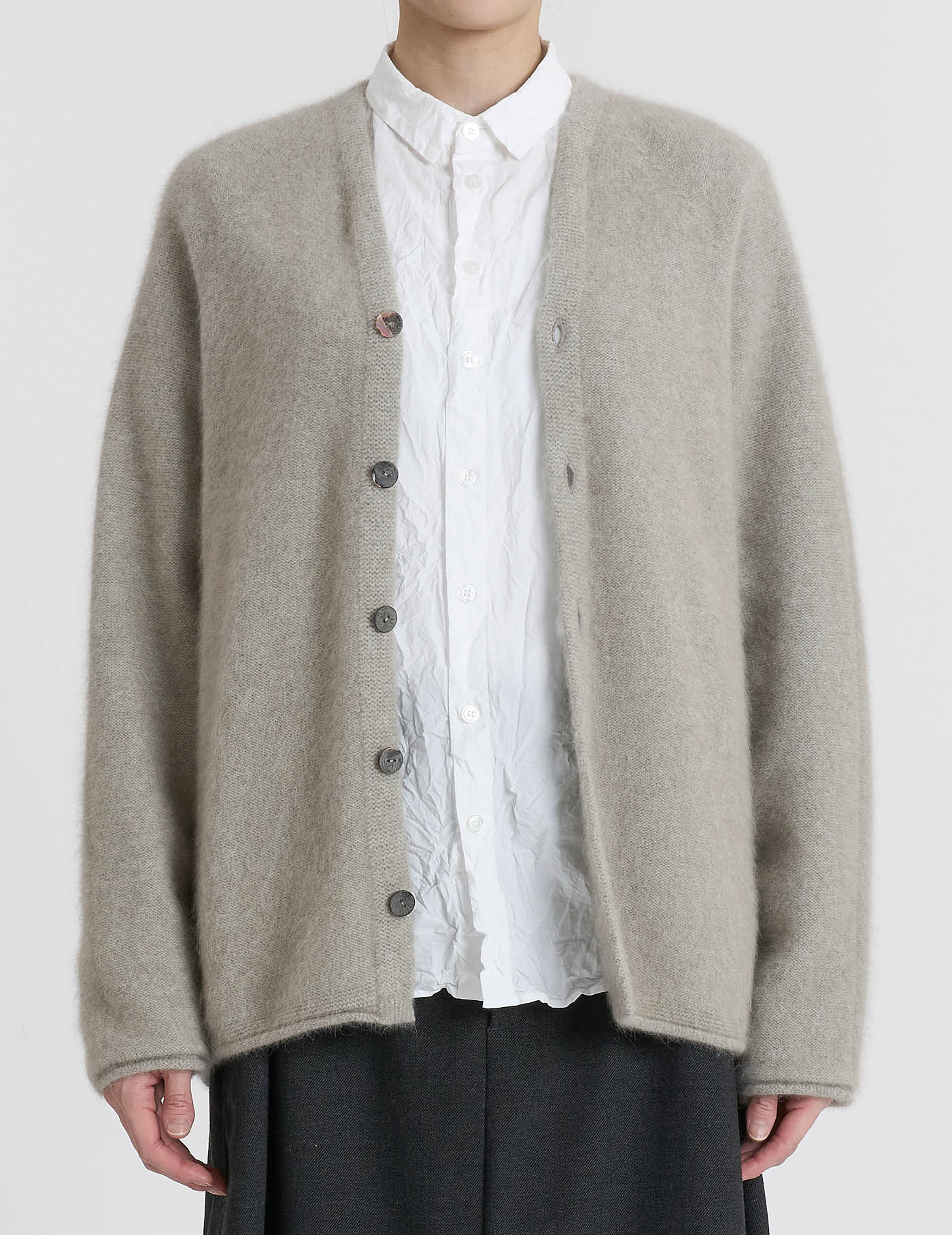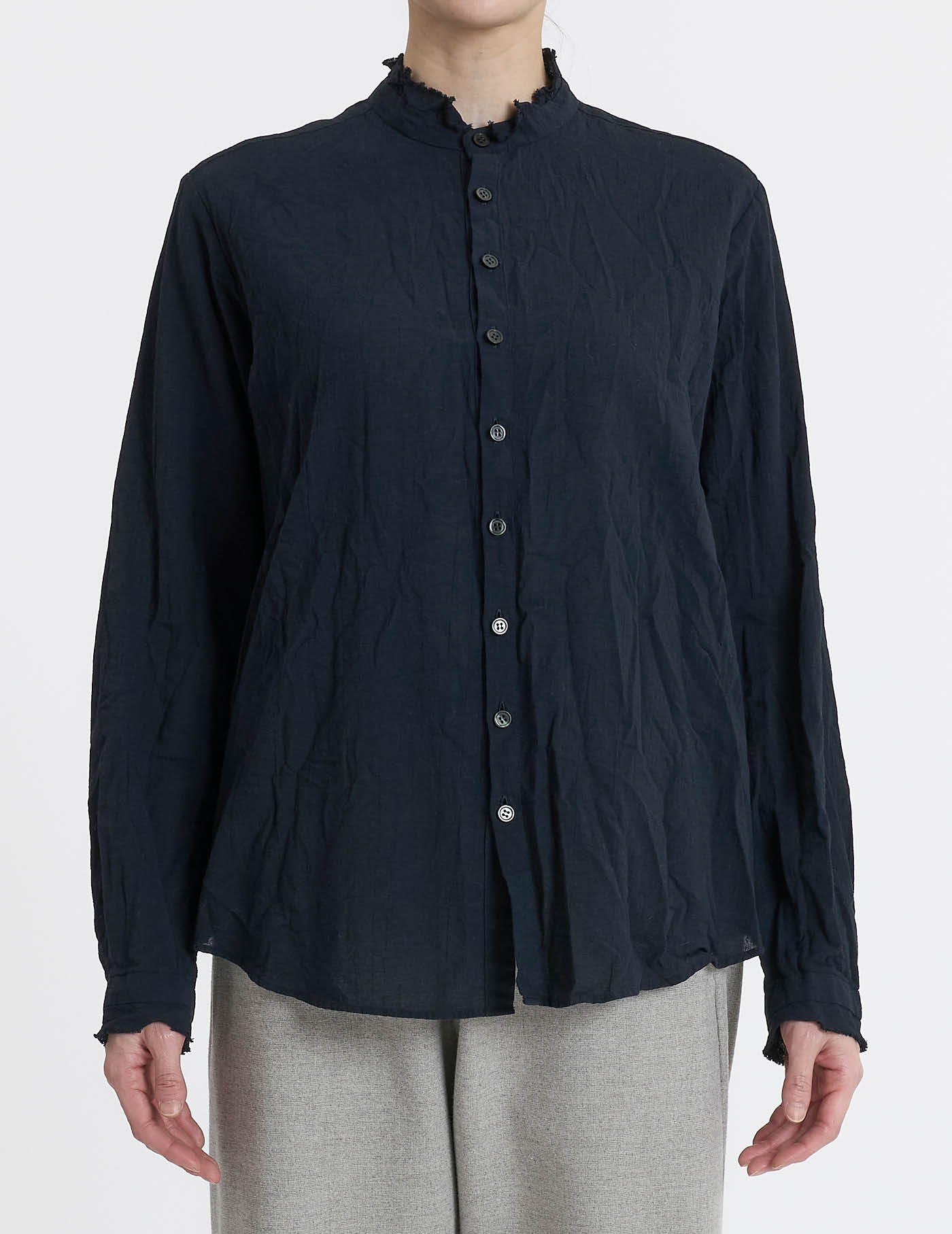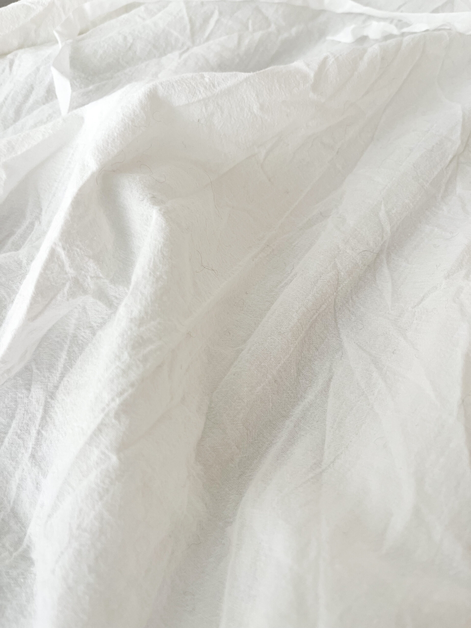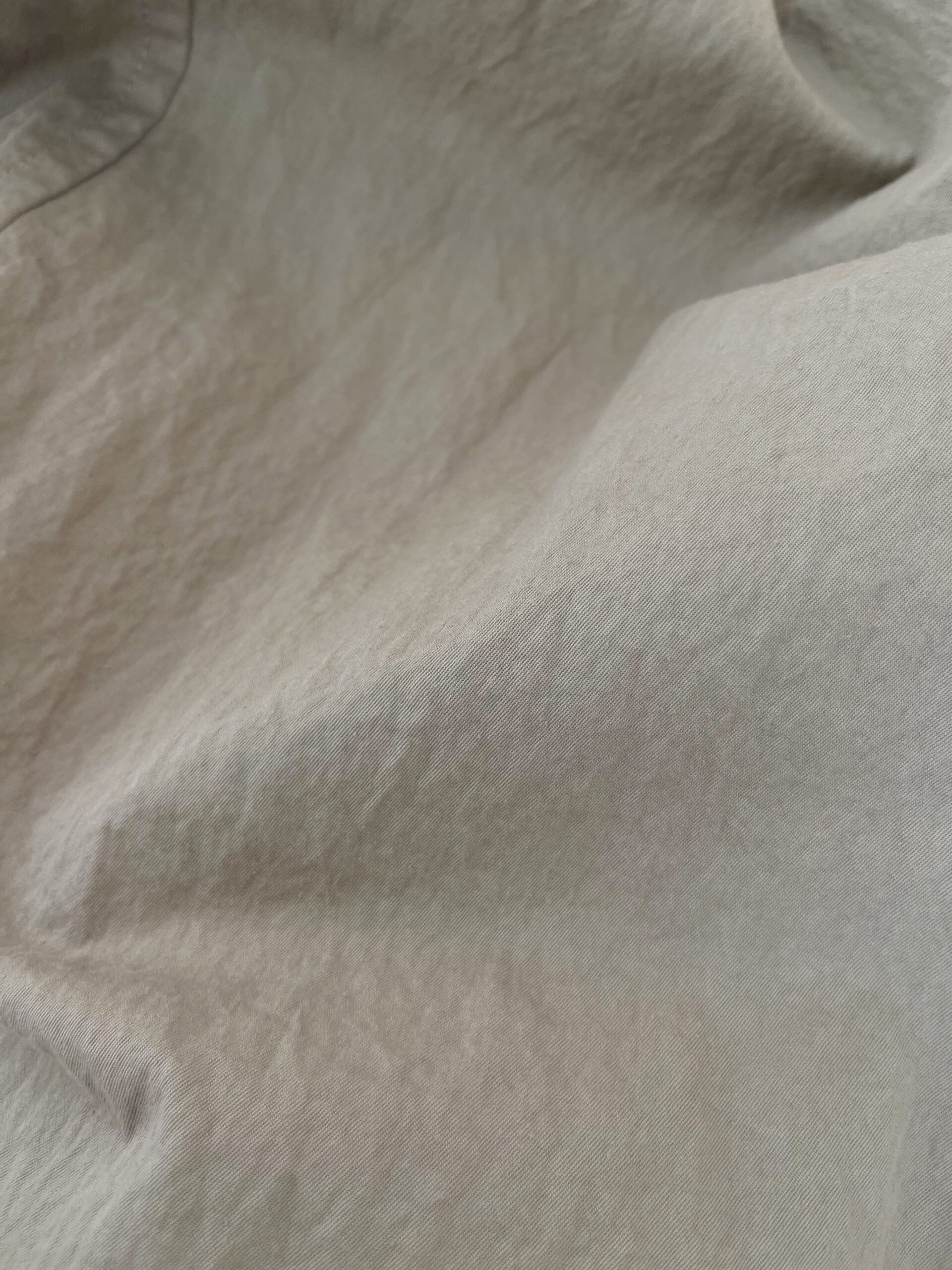 通常の糊抜きではなく、ワッシャーをかけながら糊抜きをした後にCC加工(クールクラッシュ)を行い、形状を保ちながら風合い付け。