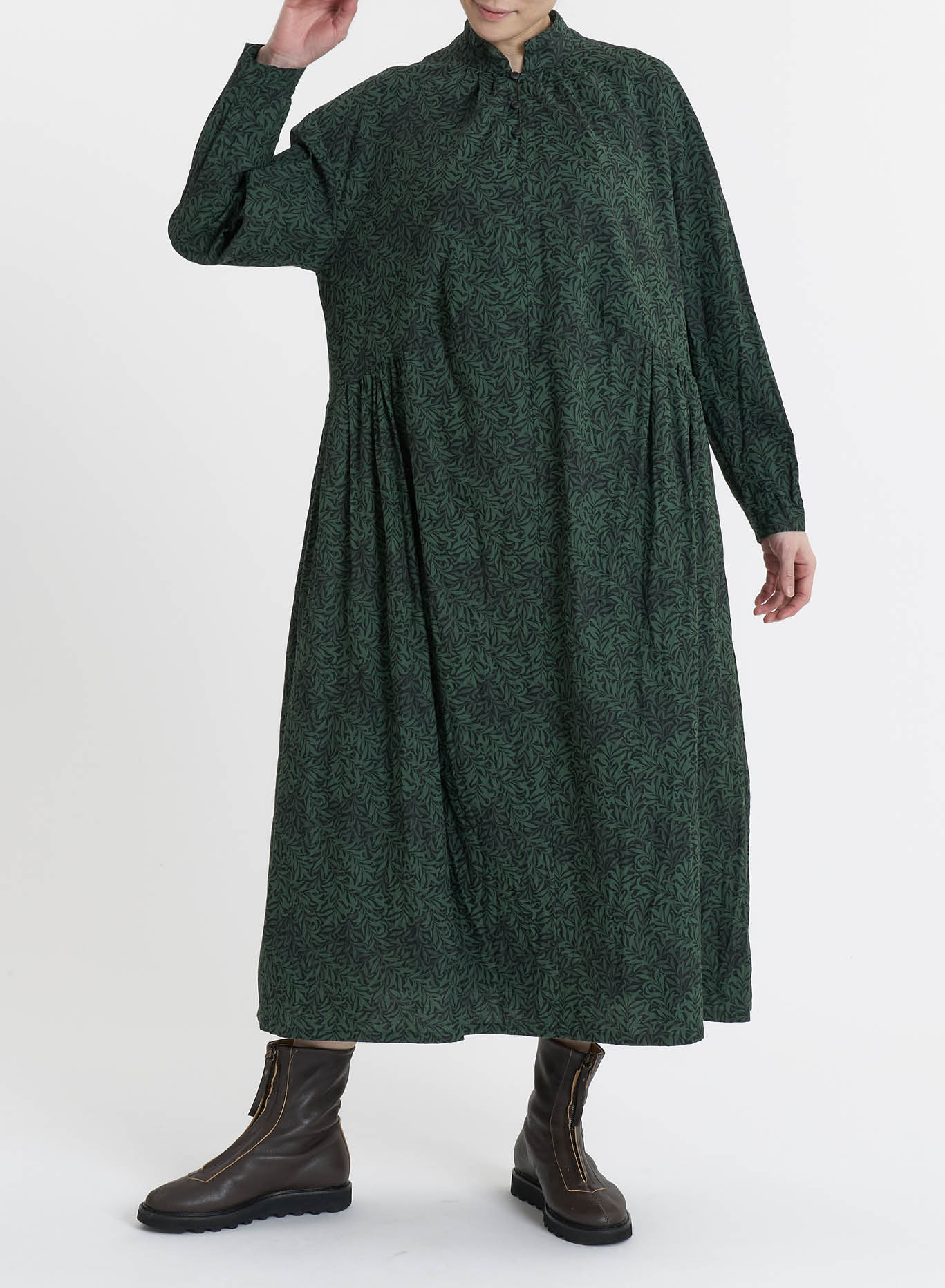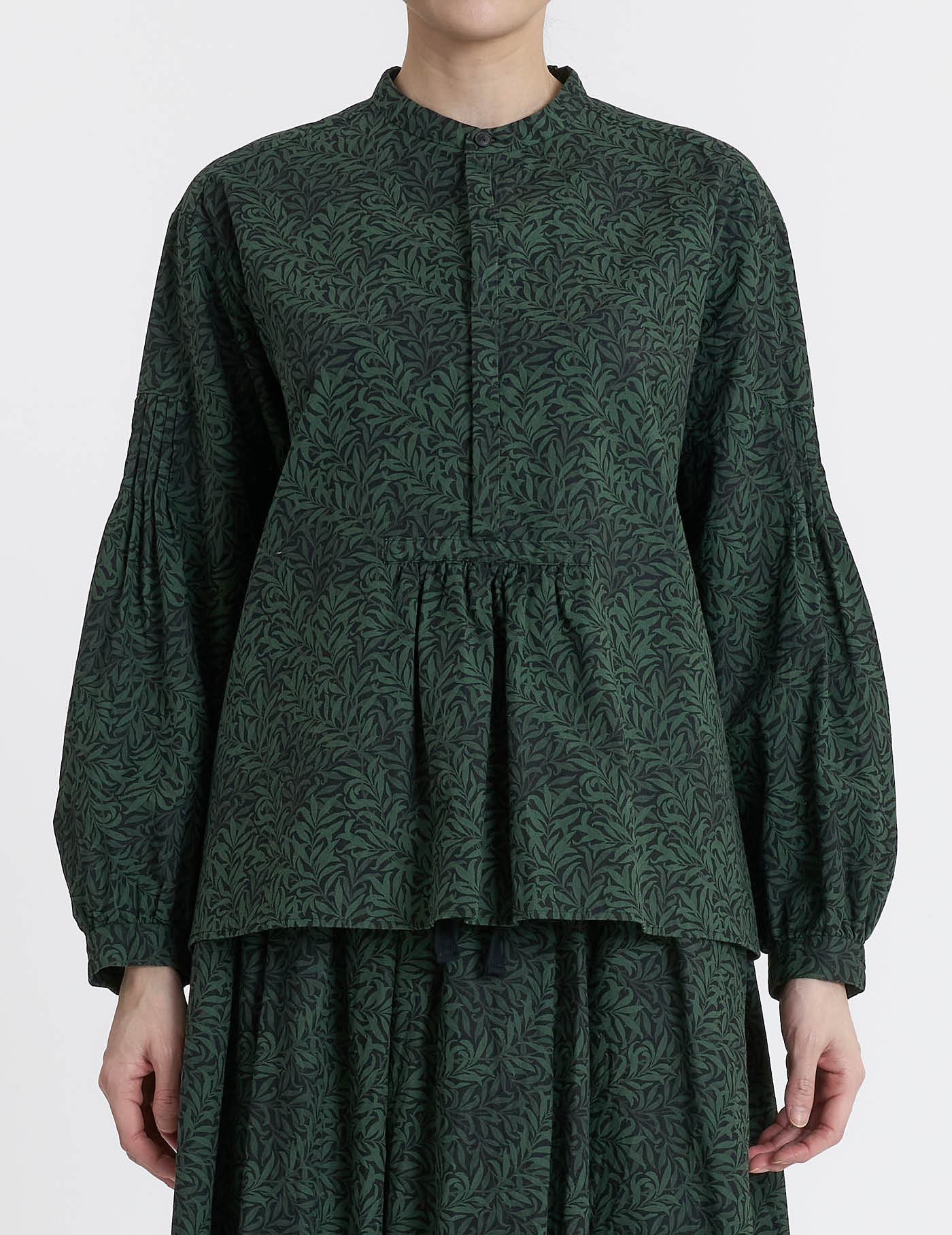 ウィリアム・モリスデザインのWillow Bough(ウイローボウ)プリントの綿素材を使用し、製品反応染めでパドカレらしい印象に仕上げた。