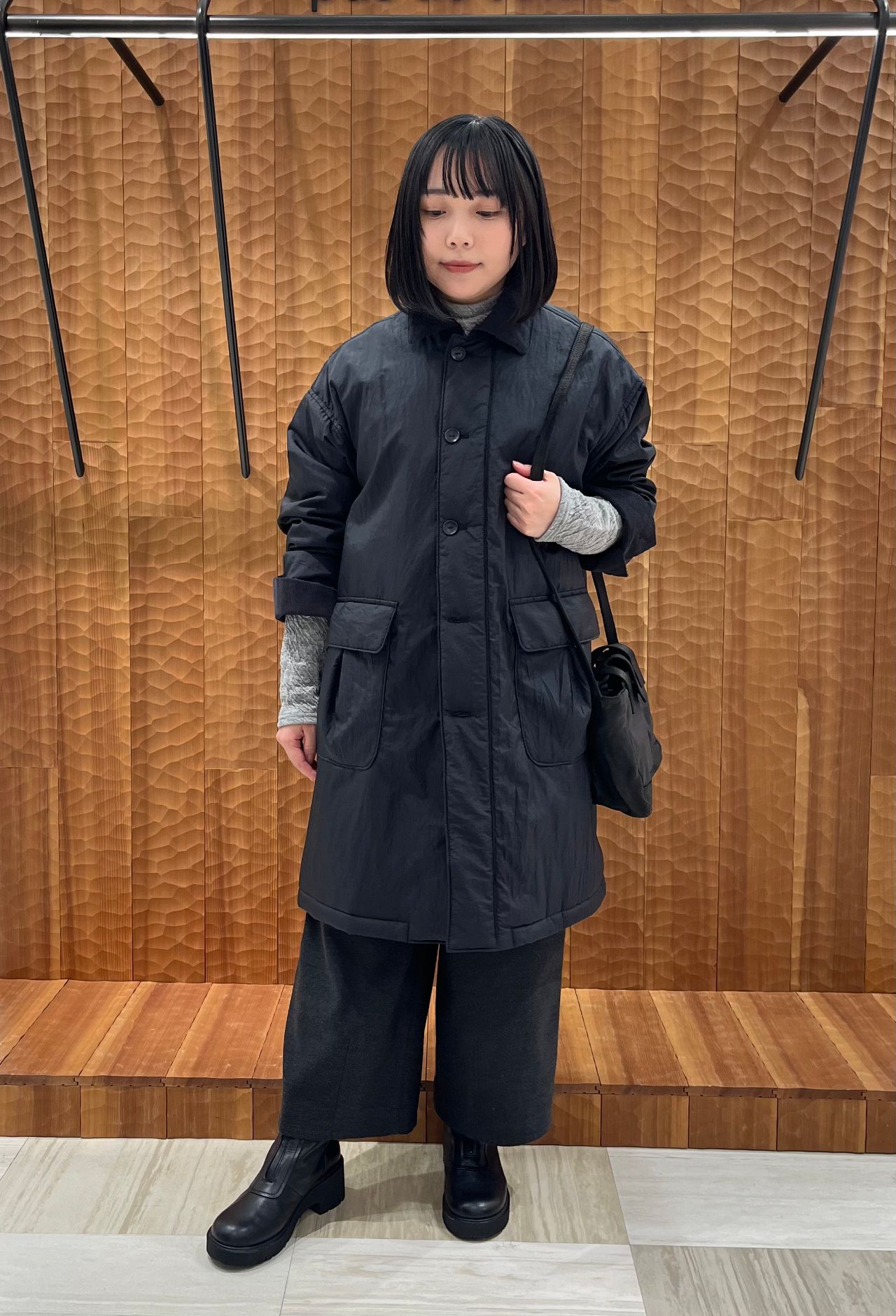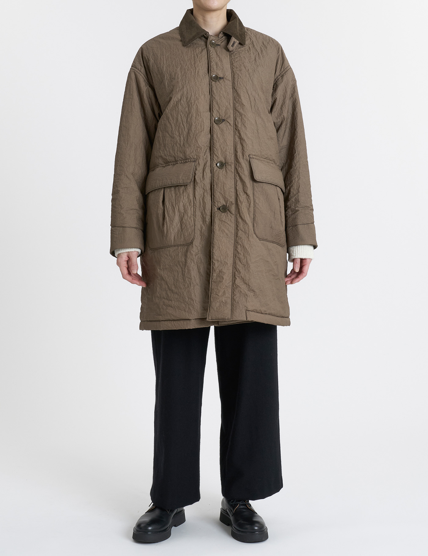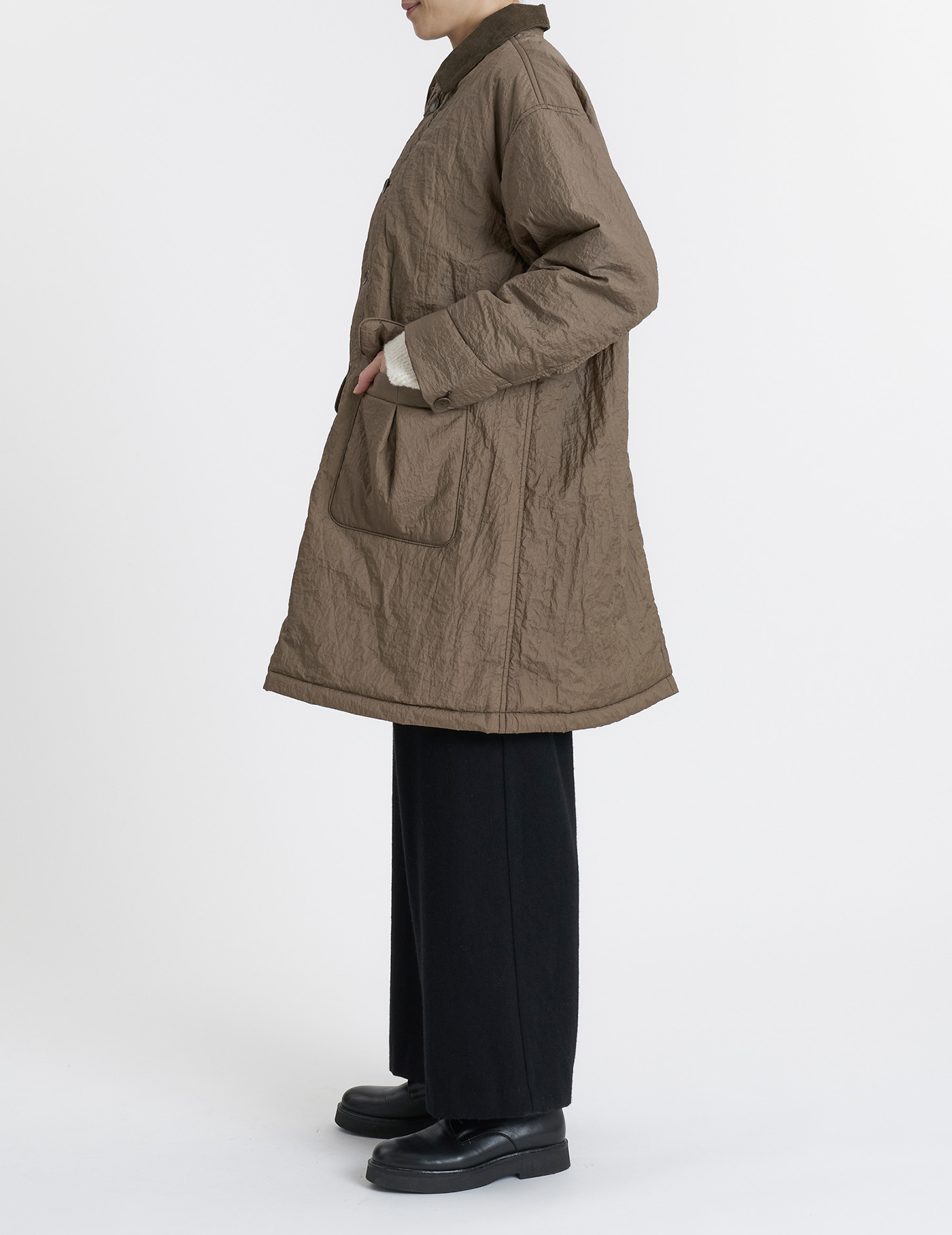 中綿入りステンカラーコート。