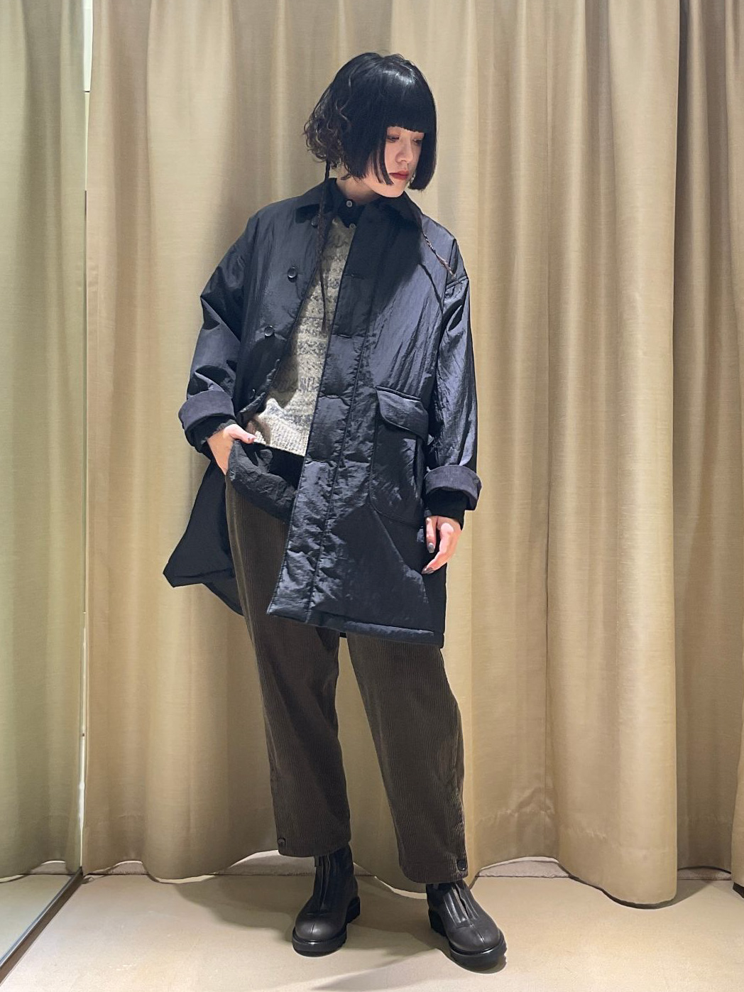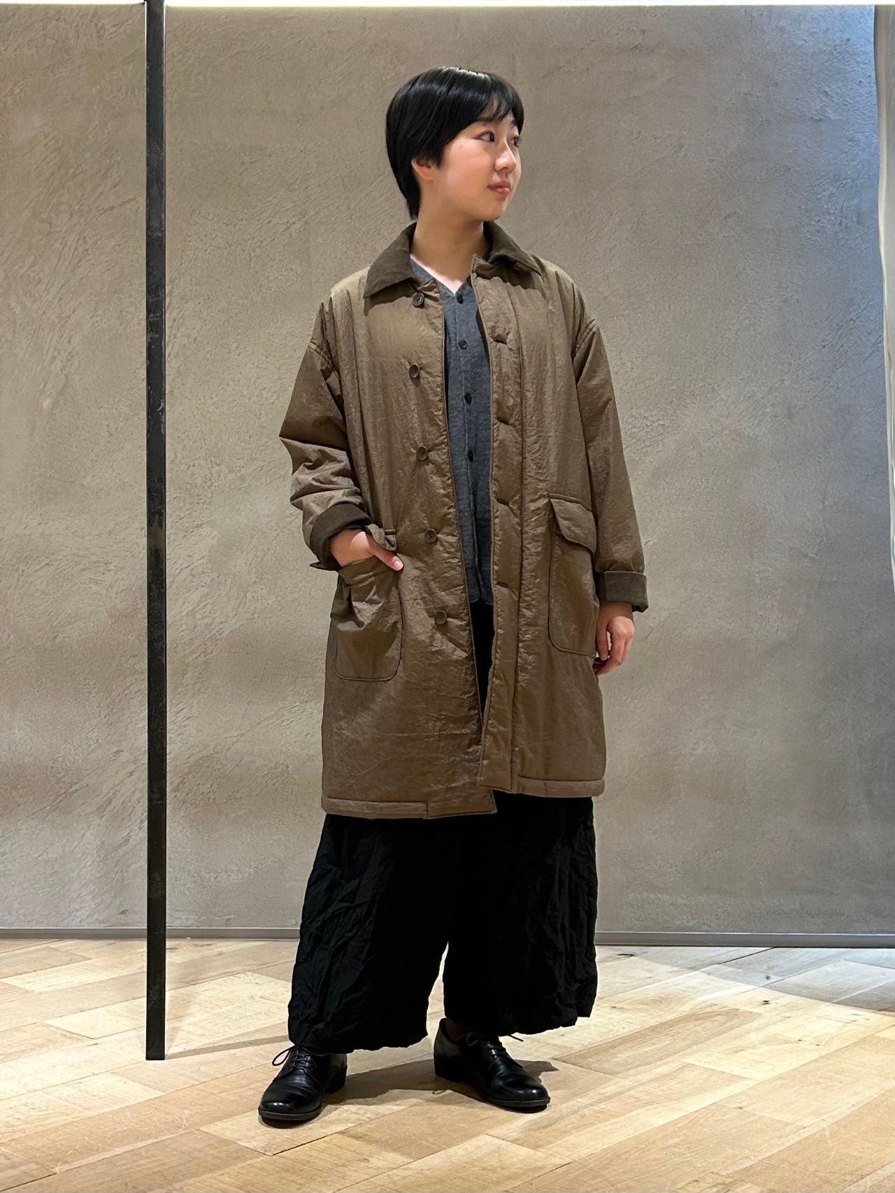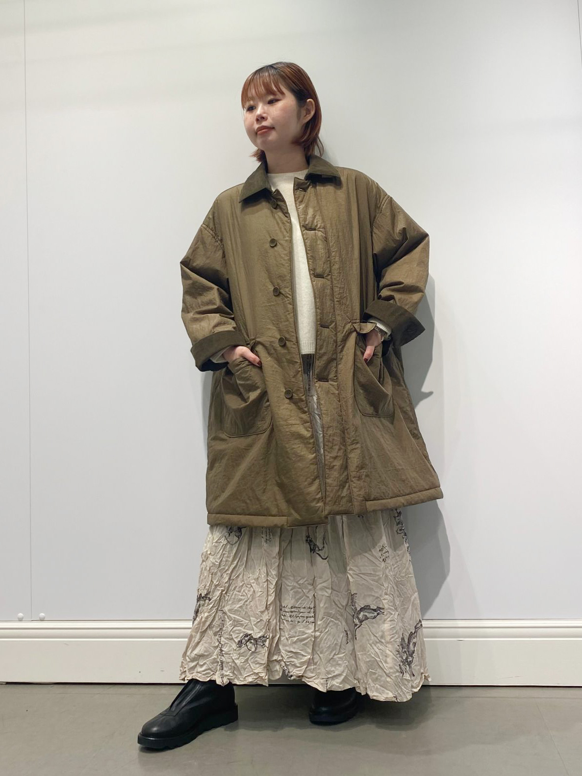 中綿入りステンカラーコート。