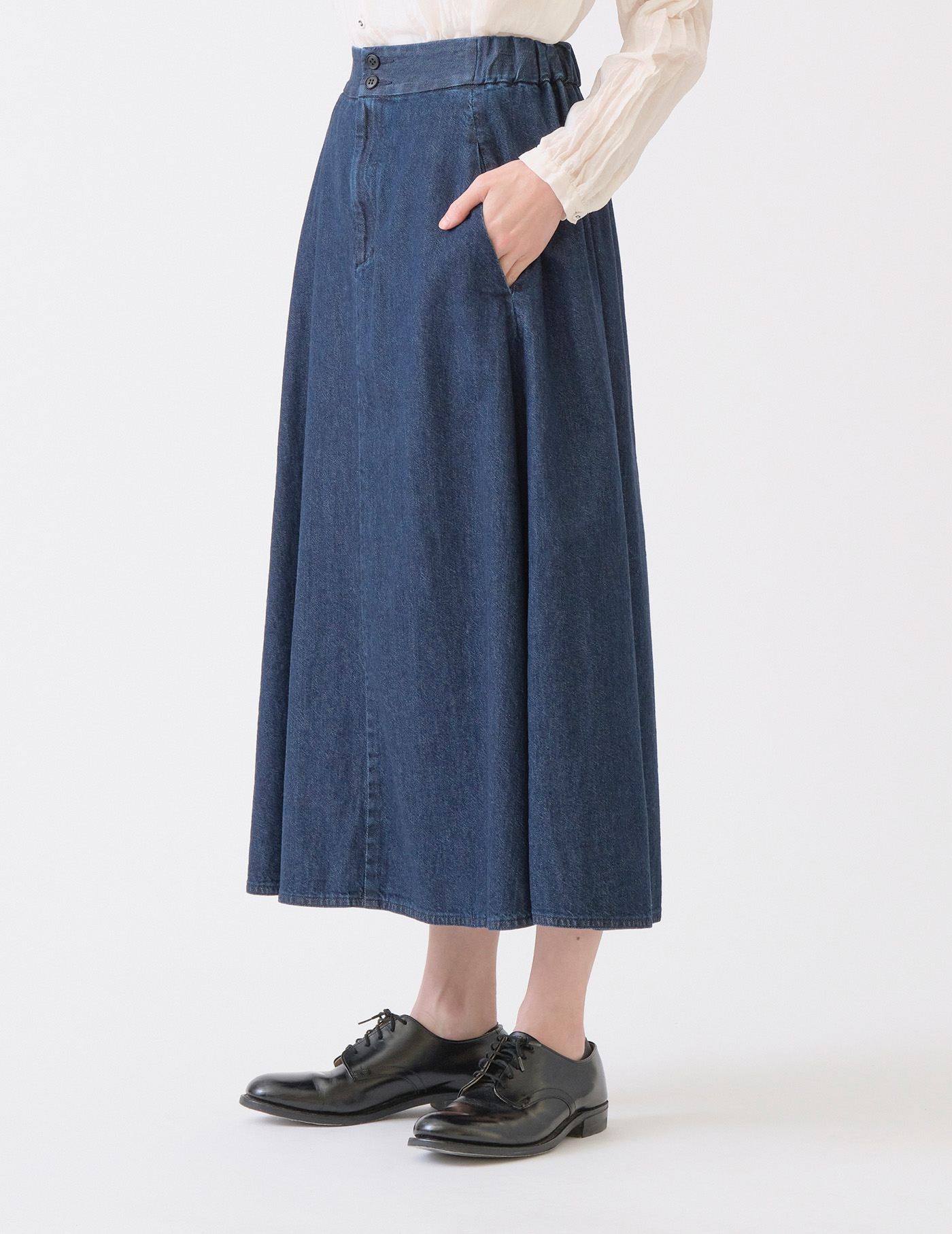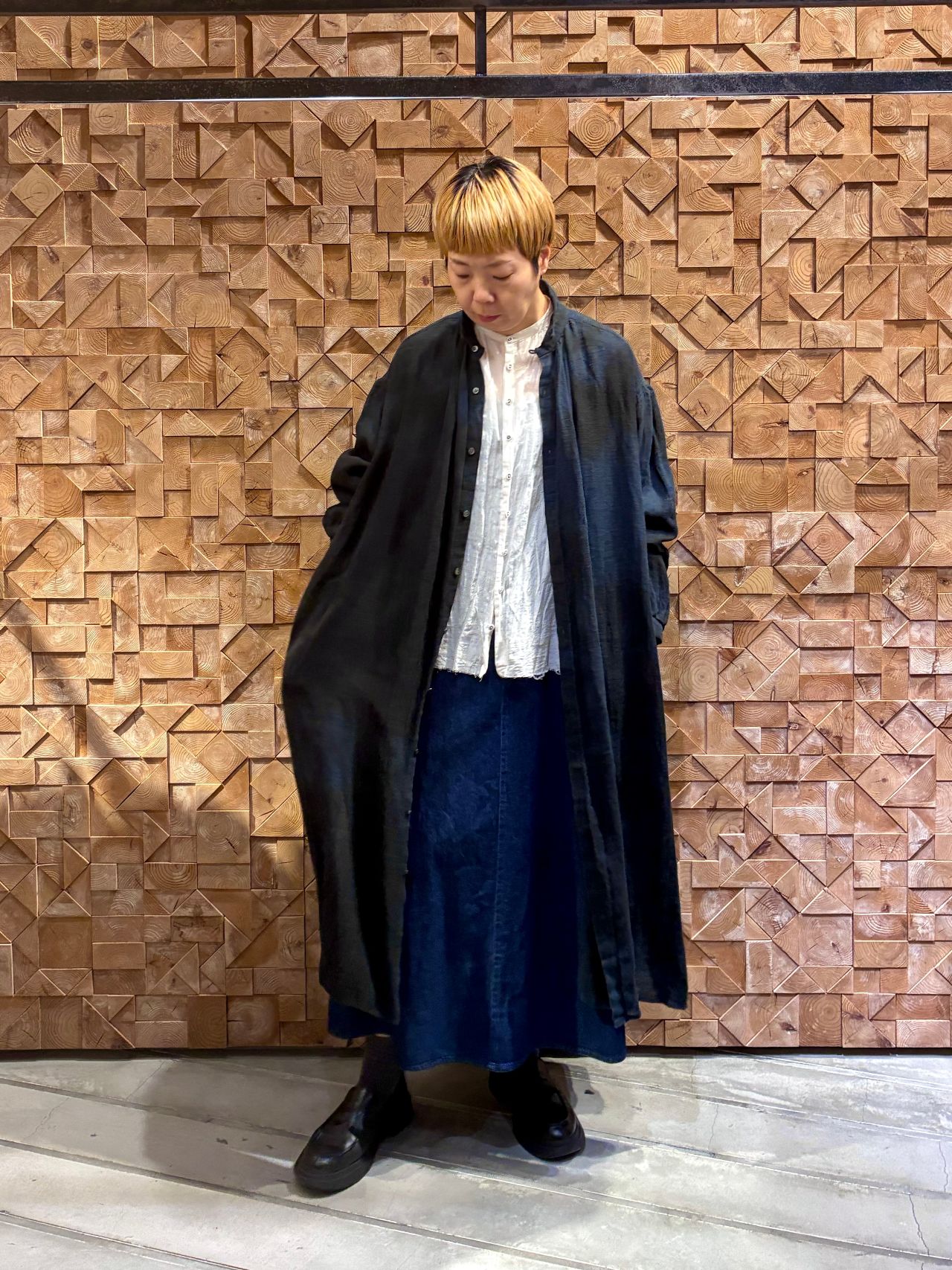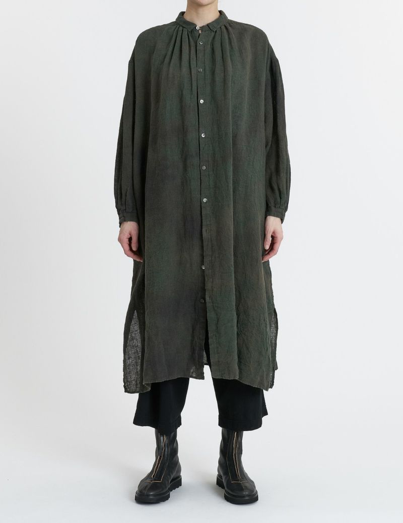 前を閉めればワンピースとして中にパンツを履いたレイヤードスタイルにも、