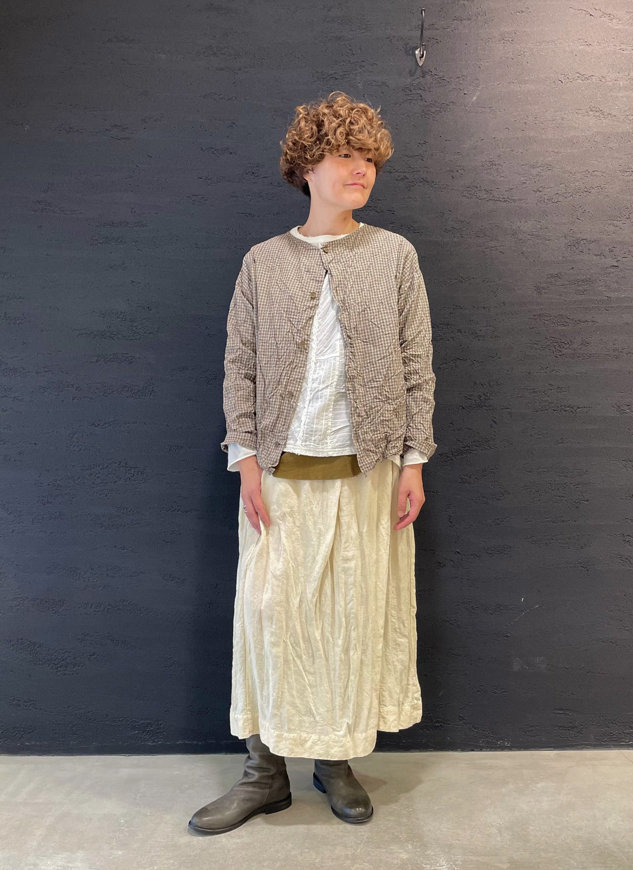 袖にもゆとりを入れているため、中に長袖を重ねることもでき、レイヤードスタイルにもおすすめです。