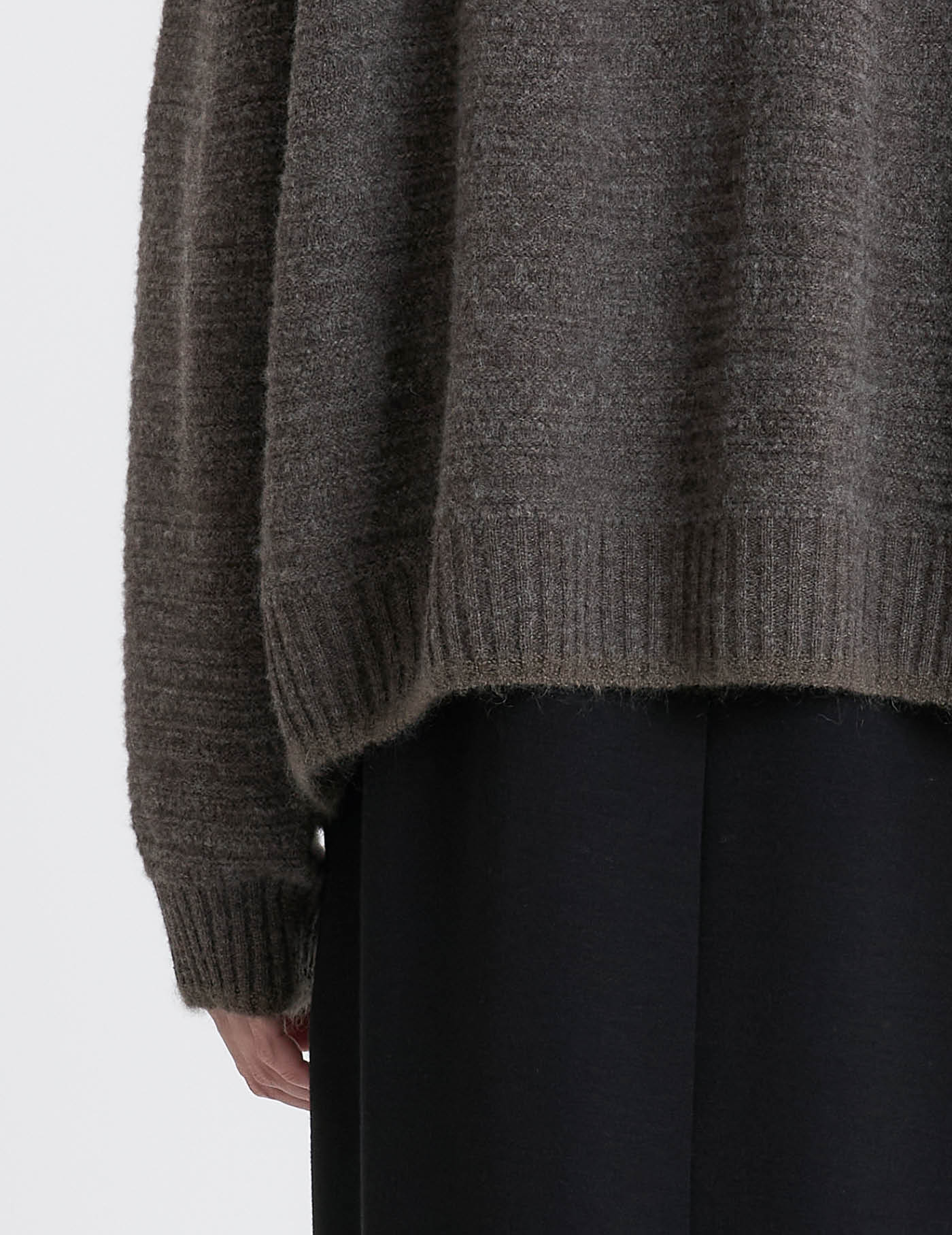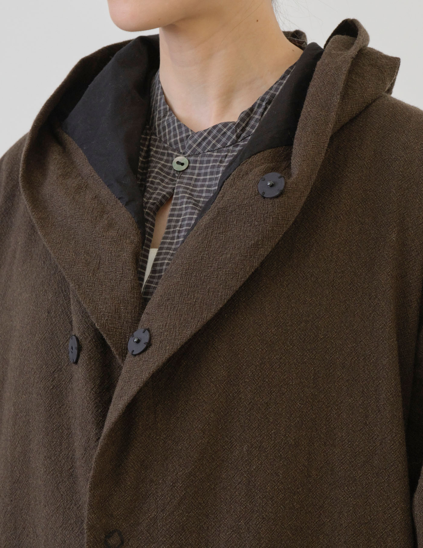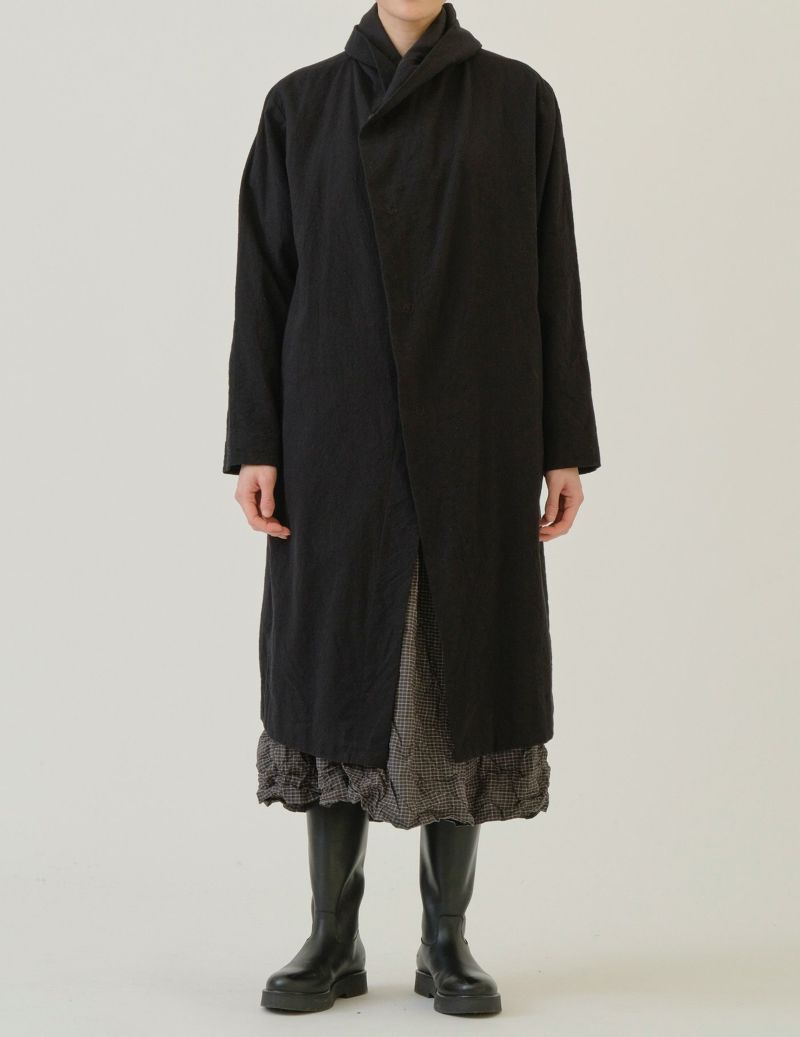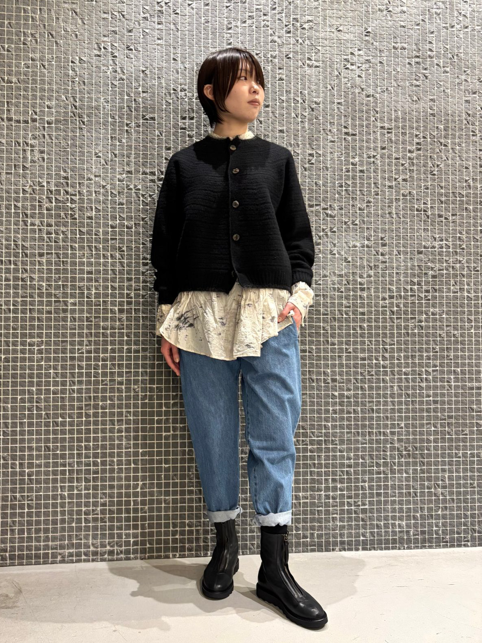 シーズンレスで着ていただける素材感なので、冬はレイヤードスタイルで。