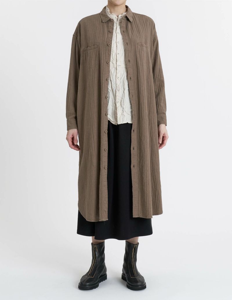 前ボタンを開ければ羽織としても◎。裾のカーブラインもアクセントになっています。