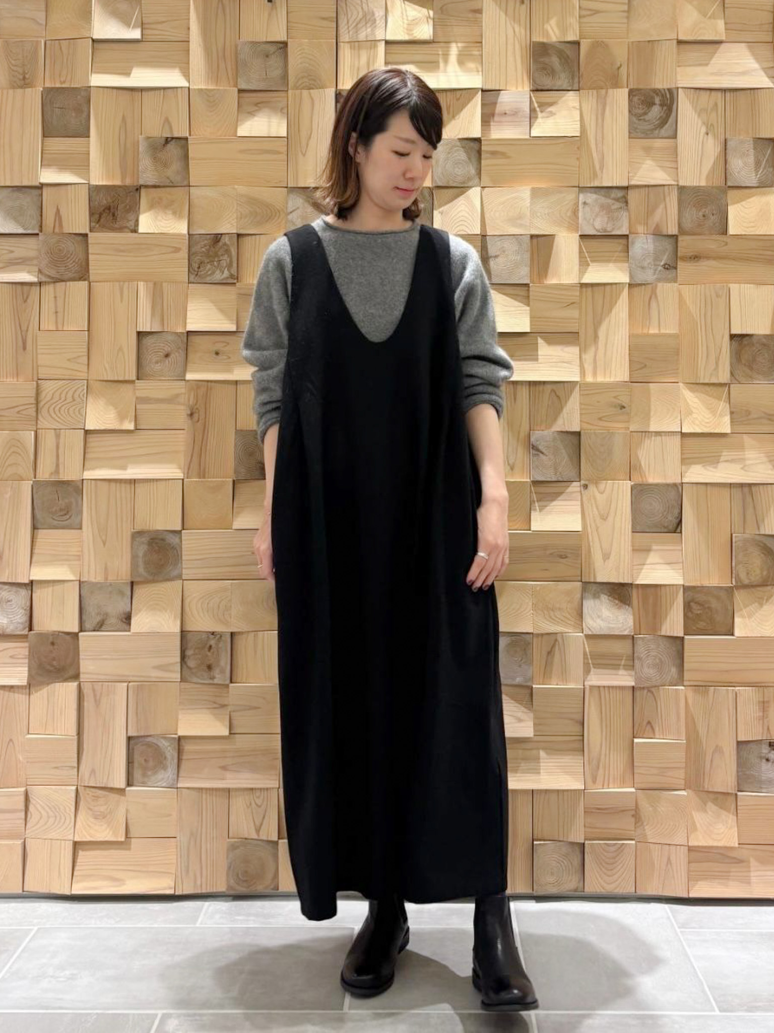 冬は中にタートルやブラウスを着てレイヤードスタイルにおすすめです。