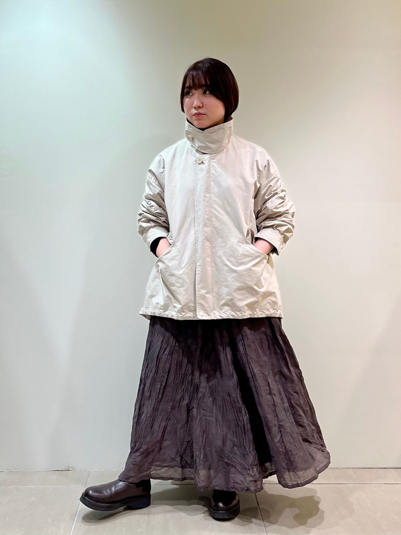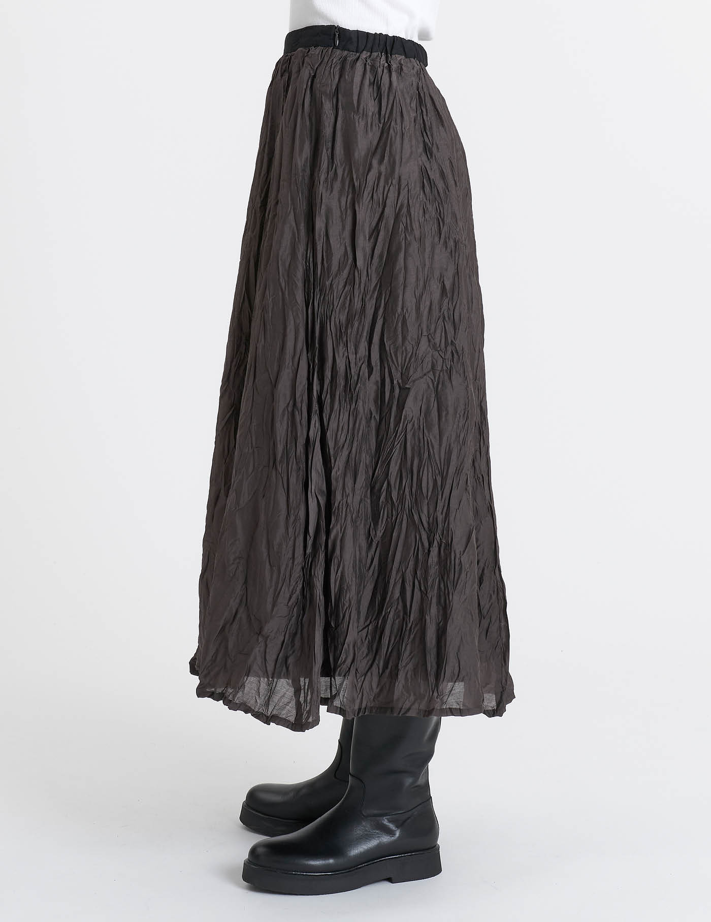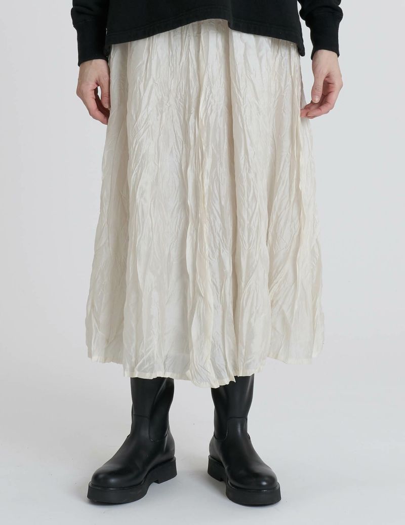 ランダムなシワ感が立体的なロングスカート。
