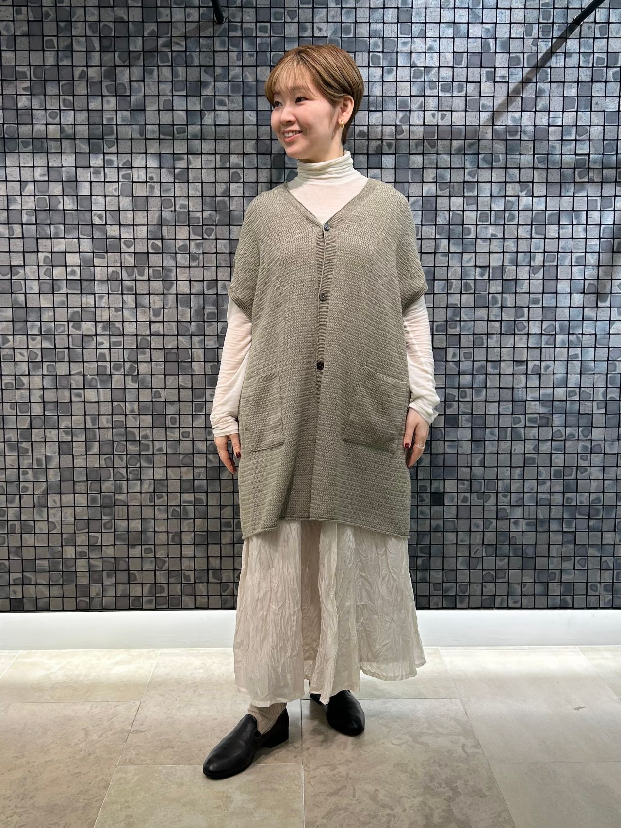 カジュアルな裏毛トップスやブルゾンとのMIXコーディネートもしやすくておすすめです。