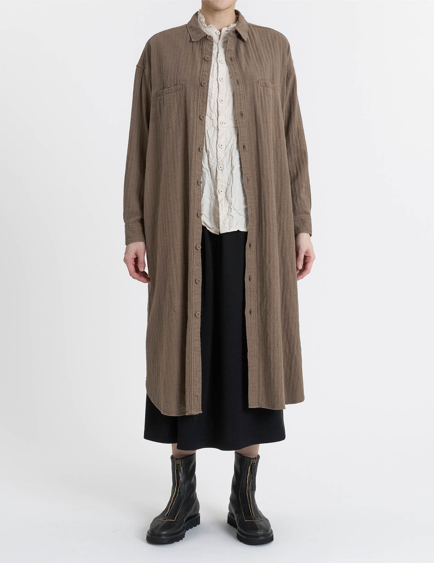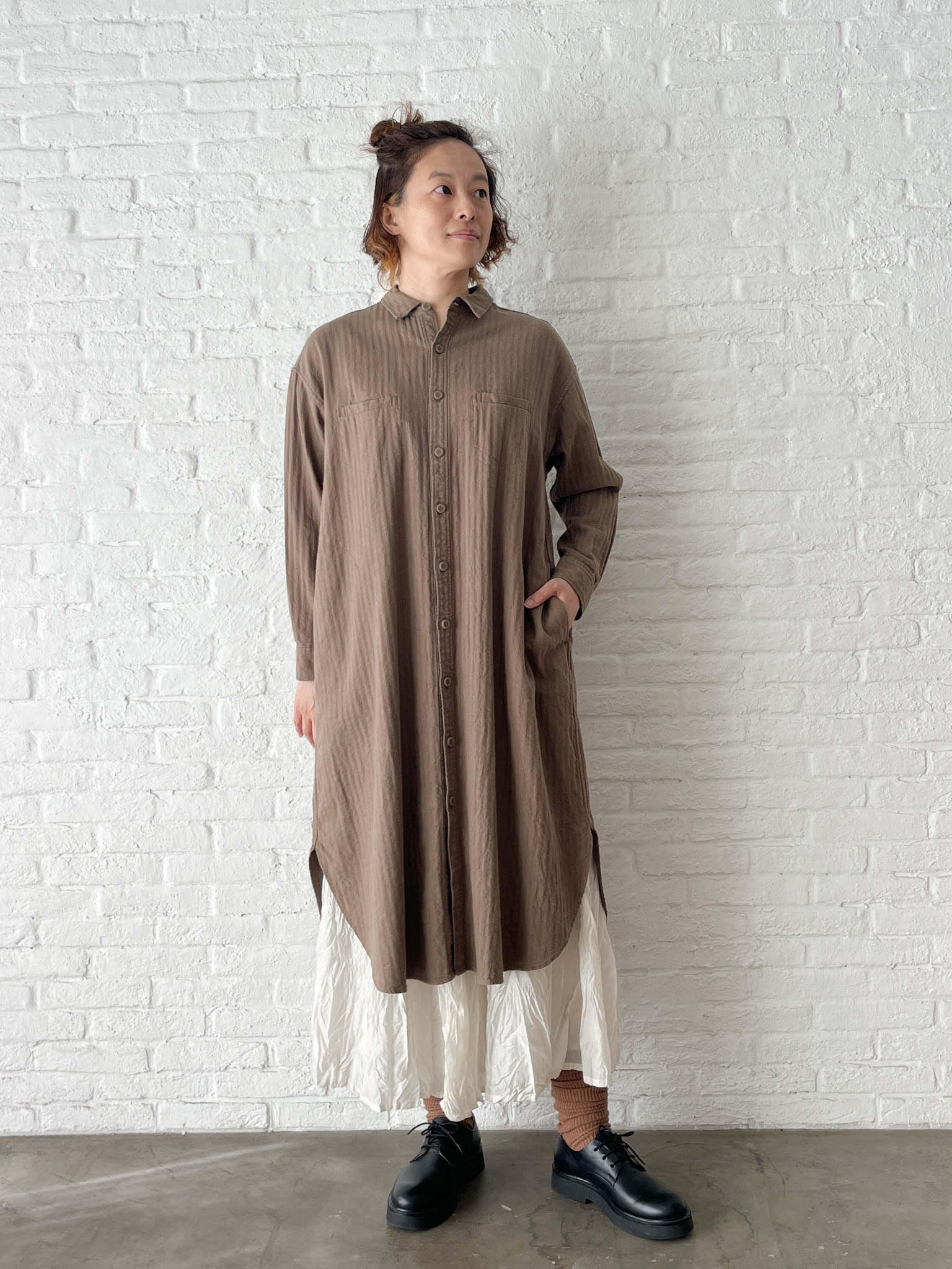 • リネン綿ヘリンボン ワンピース