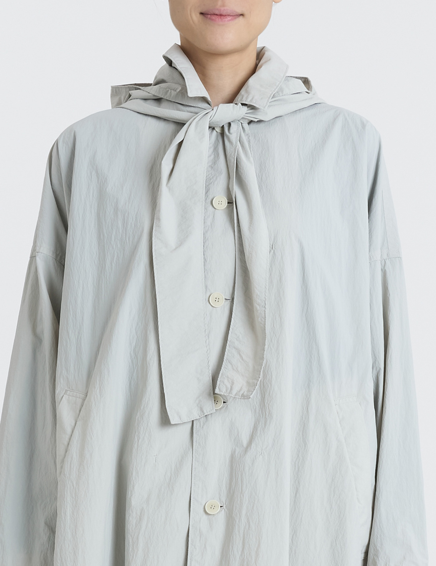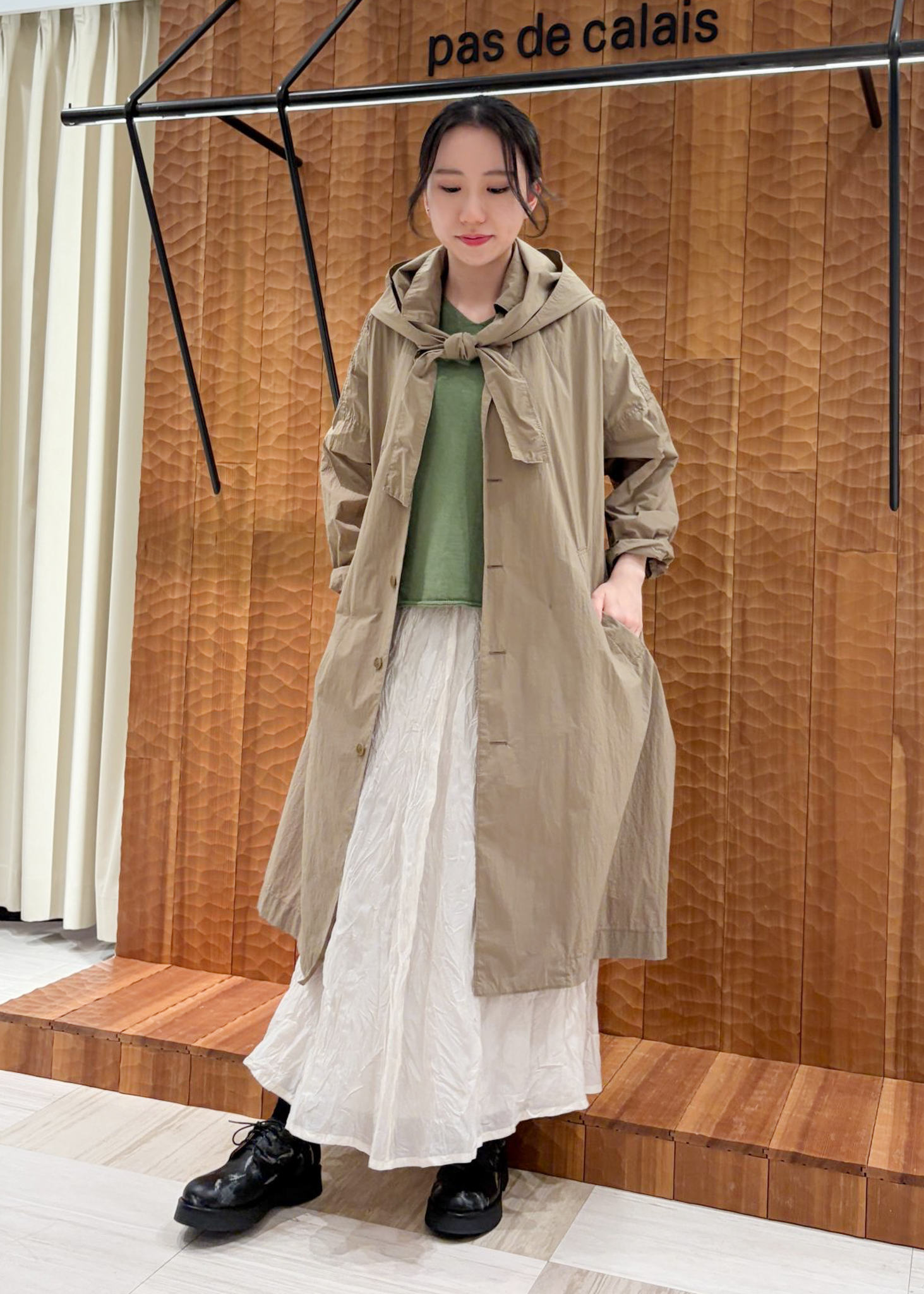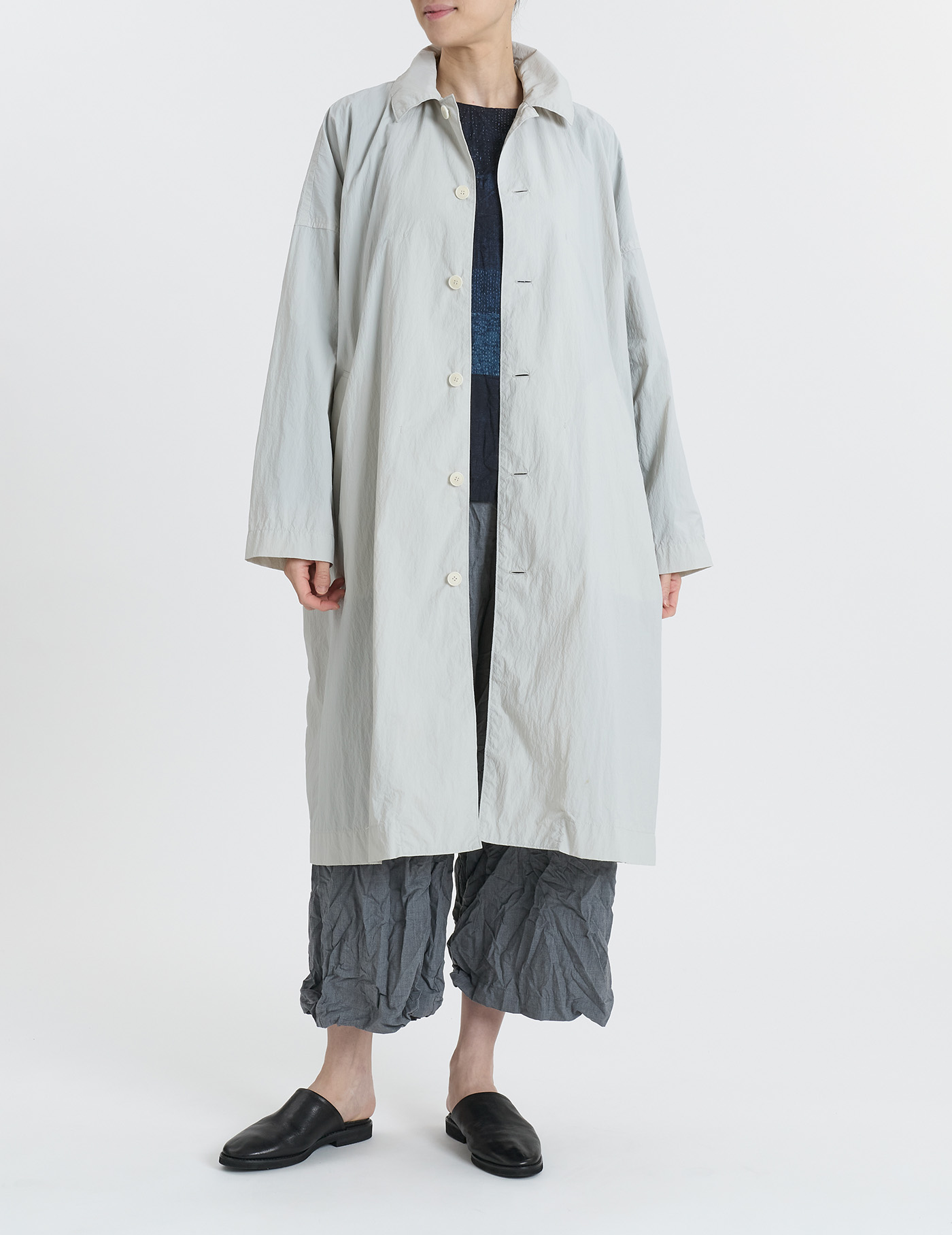 春夏に着まわせるような裏地なしの1枚仕立てで、軽量なため持ち運びもでき、旅行にも便利なコートです。