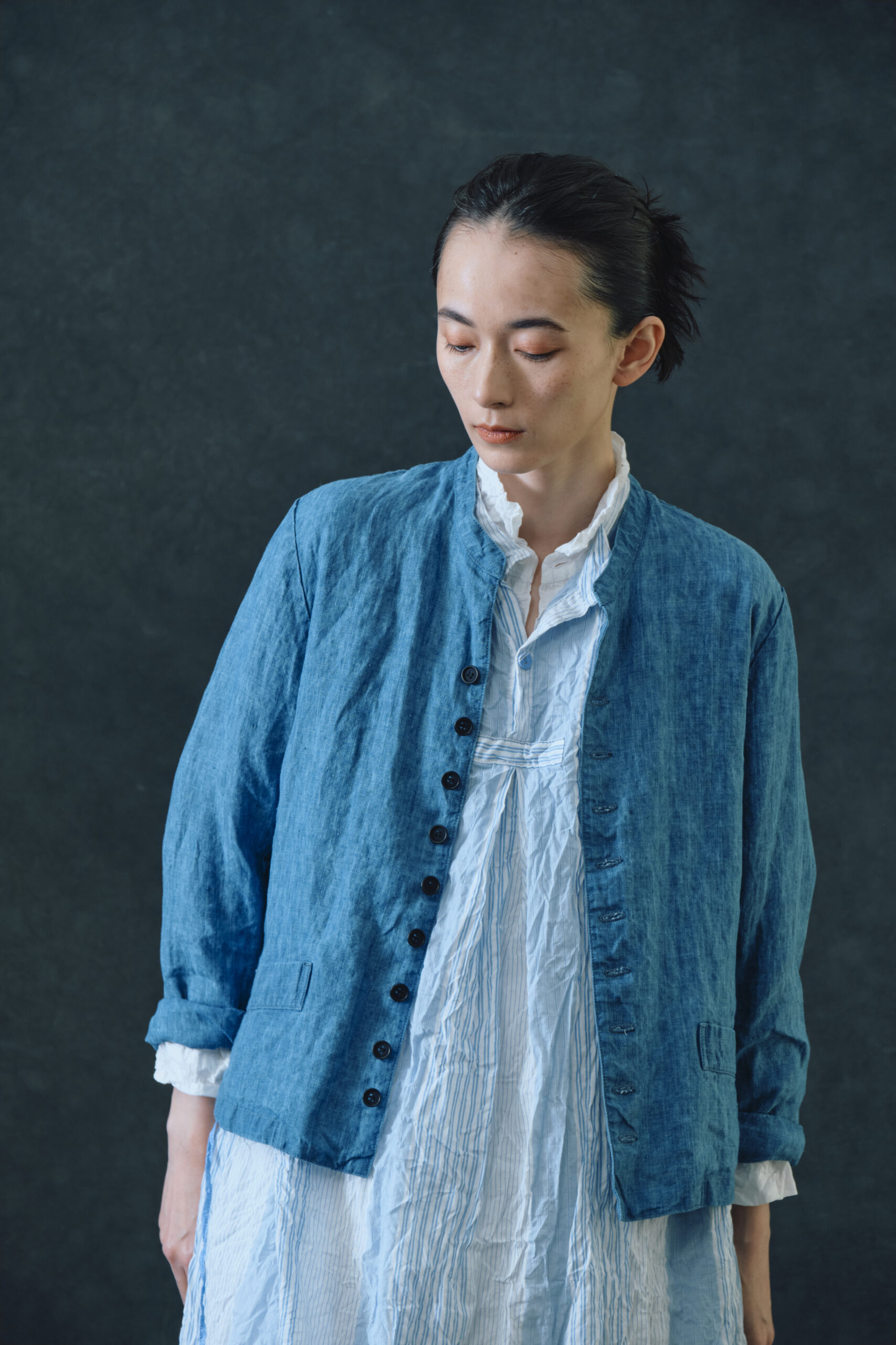 リネンインディゴシャンブレー ジャケット