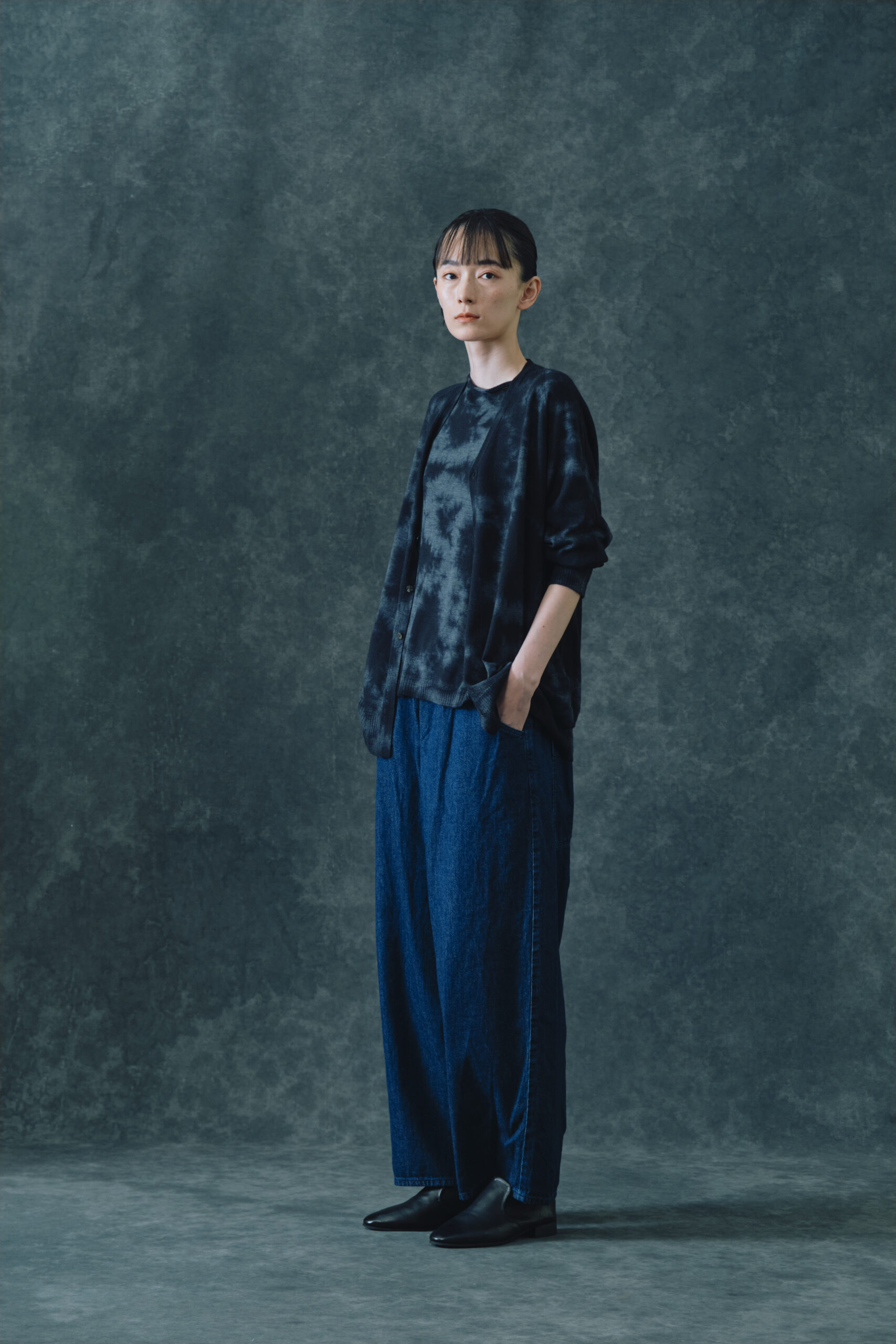 アラシャンカシミヤ100 ムラ染Vネックカーディガン