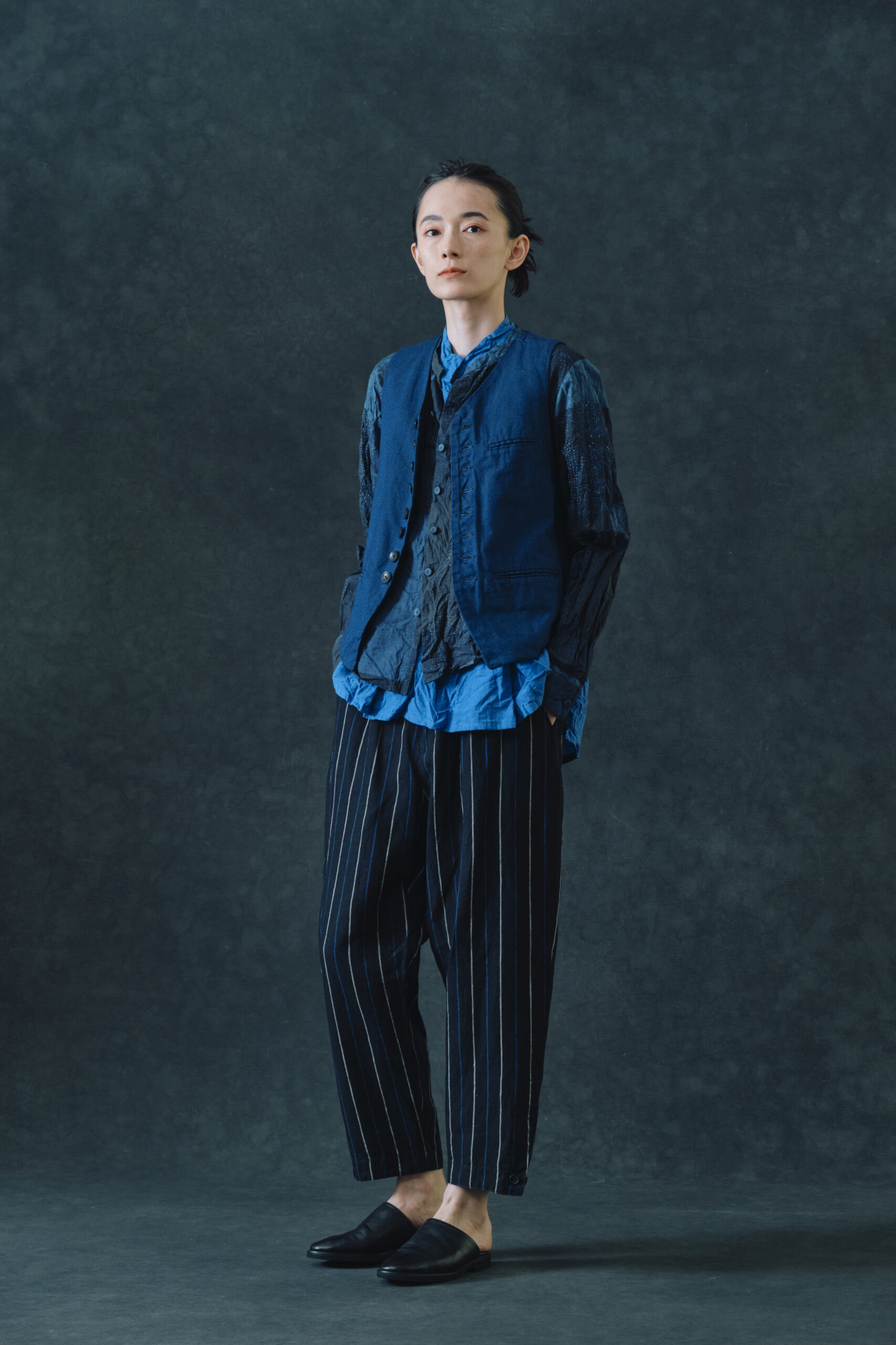 先染めオクスフォード ジレ