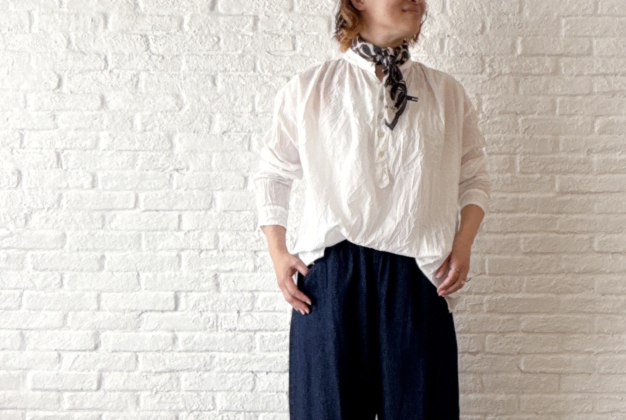 ふんわりとした肌あたり優しい風合いの、正方形のプチスカーフ。 手描きのような繊細なタッチを、インクジェットプリントで表現しました。 首元にコンパクトに巻いたり、バッグに付けたり。